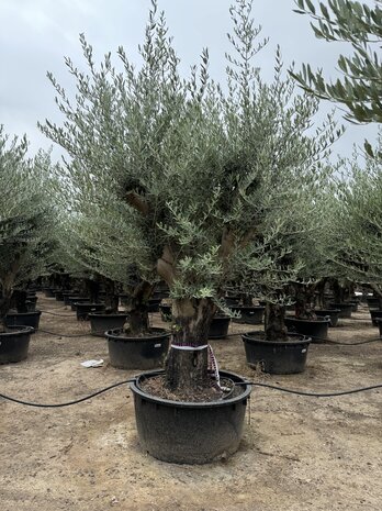 De Olea Europaea vertakte olijfboom is een prachtige en winterharde boom die ideaal is voor tuinen, parken en landerijen. Deze boom is een echte klassieker en wordt vaak gekenmerkt door zijn mooie stam. Olijfbomen produceren heerlijke vruchten, olijven, die groen of zwart kunnen zijn afhankelijk van de rijpheid. Deze vruchten zijn rijk aan vetten en vitamine E en worden vaak gebruikt in de keuken voor het maken van olie, sauzen en salades. Kies voor een olijfboom in uw tuin voor een mediterraan gevoel en geniet van deze prachtige boom!