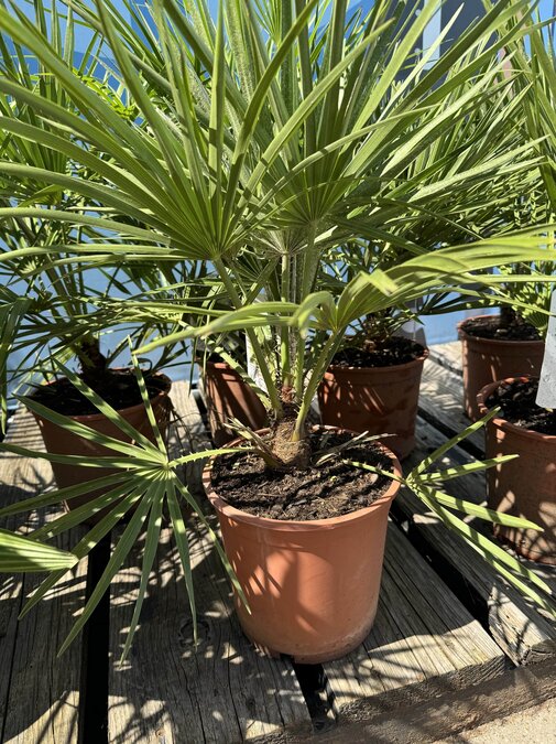 Licht: De Chamaerops Humilis prefereert volle zon, maar kan ook in halfschaduw groeien. Als kamerplant, plaats deze in een venster met veel licht.