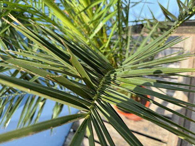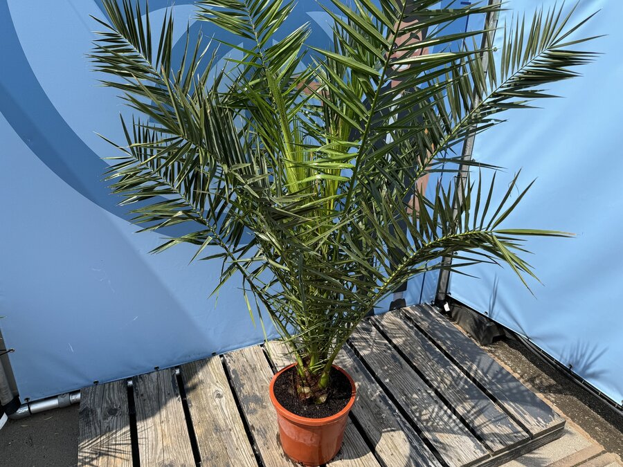 Met haar prachtige bladkroon en krachtige stam is de Phoenix Canariensis de perfecte keuze voor iedereen die een vleugje exotiek in de tuin of op het terras wil brengen. Ideaal als solitaire blikvanger of in combinatie met andere mediterrane planten.
